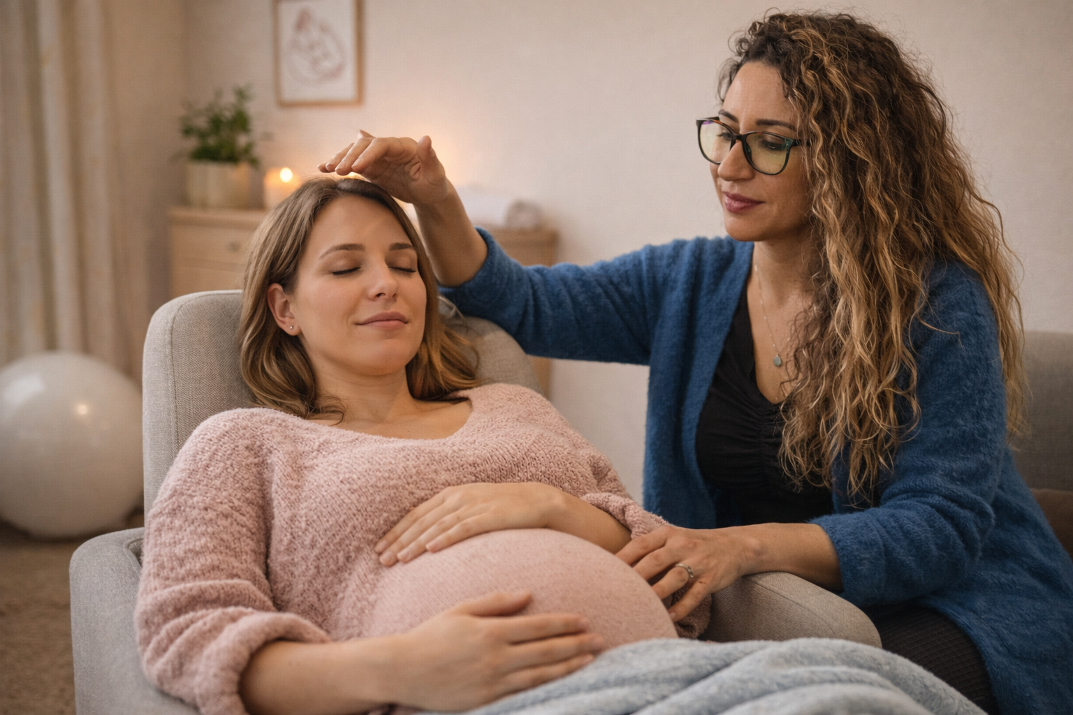 Grâce à l’hypnose, la future maman apprend à relâcher les tensions, à se connecter à ses